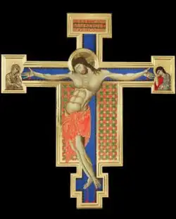The surprisingly large Chapel was completed in 1976, and sympathetically improved in 2011 (the first donation for these works was given by Pope Benedict XVI, who had stayed at Fisher House when he was Cardinal Joseph Ratzinger to give a lecture in 1988).[7][8] A reconstruction of a c. 1280 Cimabue crucifix, was already in place since 2008, having been commissioned by the Chaplain, Fr Alban McCoy, from the Hamilton Kerr Institute. This 2m artwork was constructed according to contemporary medieval Italian methods, in particular those documented in Cennino Cennini’s c. 1400 work Libro dell’Arte.