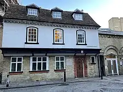 In 1924, a Grade II listed[6] pub called the Black Swan on Guildhall St was purchased by CUCA for £10,000. The Chaplaincy and the home of the Chaplain was established here, with the new name of Fisher House. The site consists of two houses of c.1600, joined at right angles to each other, which form the Chaplain's home. Within the Chaplain's home is the Great Chamber, which has been described as one of the most pleasant rooms in Cambridge.[3]