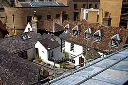Mgr Alfred Gilbey, who was the Chaplain for 100 terms (1932-1965), is buried in the courtyard. He saved Fisher House from demolition in the Sixties when the other early modern properties surrounding it were destroyed by the Council.[9] Yet, it is not the buildings that make Fisher House but the students and other members of the University who worship at the Chaplaincy and create so many opportunities to grow in faith and enjoy each other's company.