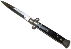 (a) any knife which has a blade which opens automatically by hand pressure applied to a button, spring or other device in or attached to the handle of the knife, sometimes known as a “flick knife” or “flick gun”; or
