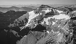 Fishhawk Glacier is located in the Absaroka Range, Shoshone National Forest, in the U.S. state of Wyoming. The glacier is situated on the northeast slope of Overlook Mountain (11,869 feet (3,618 m))[2] and is one of but a few glaciers that can be found in the Absaroka Range.