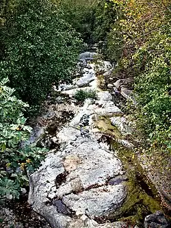 The natural vegetation of the edges of the watercourse includes wild garlic (Allium vineale), lavender-leaved anthyllis (Anthyllis hermanniae), Arabian pea (Bituminaria bituminosa), shrubby hare's-ear (Bupleurum fruticosum), thorny broom (Calicotome spinosa), pink rock-rose (Cistus creticus), Montpellier cistus (Cistus monspeliensis), fragrant virgin's bower (Clematis flammula), French lavender (Lavandula stoechas), honeysuckle (Lonicera implexa) and rosemary (Rosmarinus officinalis). In the downstream section, the riparian forest is mainly shrub. Further upstream, there are trees such as Italian alder (Alnus cordata), black poplar (populus nigra) and South European flowering ash (Fraxinus ornus).[2]