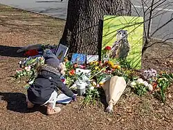 Following his death, people began leaving photos, cards, and other mementos under an oak tree Flaco frequently roosted in. Hundreds of followers gathered for a memorial service at the tree, during which attendees eulogized, sang, and read letters and poems.[54][55] Flaco's remains were donated to the American Museum of Natural History, which sits just west of Central Park.[56][57]
