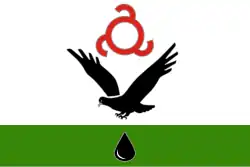 On 2 August 1993, by decree of the then President of Ingushetia, Ruslan Aushev (r. 1993–2001), a commission on state symbols of Ingushetia was formed. On 13 May 1994, the People's Assembly of the Republic of Ingushetia adopted Law No. 1-RKZ "On the state flag of the Republic of Ingushetia" according to a drawing presented by Ibragim Dakhkilgov. On 11 July 1999, the Assembly adopted the Constitution Law of Ingushetia No. 6-RKZ "On the State Flag of the Republic of Ingushetia", invalidating the Law of 13 May 1994. Thus, the ratio of the width of the flag changed its length of 1:2 to the ratio of 2:3 while the radius of the inner circle of the solar sign and the incomplete circle at the end of its rays have changed. The width of the rays has also changed.[2] On 11 July 2014, by decree of the Head of the Republic of Ingushetia, Yunus-bek Yevkurov (r. 2008–2019), No. 175, this date was established as the Day of the State Flag of the Republic of Ingushetia.[2]