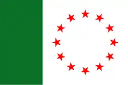 Flag of the Mountainous Republic of the Northern Caucasus, to which the Ingushetia briefly belonged to in 1917–1921 during the Russian Civil War.[2]