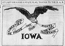 - ^ "At Last Iowa Has a State Flag, Thanks to the D.A.R." The Des Moines Register. May 12, 1917. Retrieved September 14, 2021.
