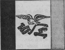 The State of Iowa did not have a flag for the first 75 years of its existence, largely because of calls for national unity during and after the American Civil War, in which Iowa fought for the Union.[1] The first unofficial state flag was used in the 1894 Worlds Fair. It was carried by Governor Boies. The flag was square with the head of a hawk in the middle of it's field.[2] The first request for a state flag was in 1909[2] by Iowa National Guardsmen who would again make a request in 1910.[3] In Fort Dodge, Iowa, members of the military advisory broad made a design for a state flag and sent it to the state Legislature. The design was described as:[4]