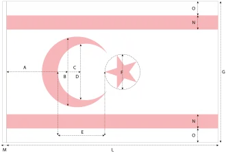 The flag of Northern Cyprus was defined in Article 2 of the Flag Law of the Turkish Republic of Northern Cyprus under these terms: "The flag of the Turkish Republic of Northern Cyprus has, under the conditions defined by law, a red star and crescent on a white background and two longitudinal lines".[1]