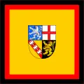 | Design | A horizontal tricolour of black, red, and gold, defaced by the coat of arms of Saarland. |