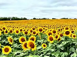 In July 2018, the Topeka young professionals organization, Forge, started the Topeka flag redesign initiative, aiming to improve on the former flag.[10] Three finalists were selected for a final ballot which attracted nearly 4,000 votes. The sunflower flag design gained 70 percent of the vote, according to the Greater Topeka Partnership, and it became the official flag of Topeka on November 12th, 2019.[1][11] Since then, the flag received an A grade and was rated in the top 25 of over 300 flags in the 2022 North American Vexillological Association survey.[12][13]