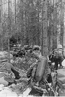 This flamethrower, like all flamethrowers employed by the Wehrmacht, was exclusively used by sturmpionieres (assault pioneers); specialist pioneers who were to assist the infantry in an assault, by overcoming natural and man-made obstacles for the infantry, clearing enemy fortifications with flamethrowers and then destroying them with demolition charges.[5] The sturmpionieres that exclusively used these flamethrowers played an important part in overcoming French fortifications blocking the German advance during the Battle of France.[5] More specifically the Battle of Sedan (1940).