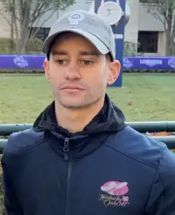 Flavien Prat (born August 4, 1992, in Melun, Seine-et-Marne, France) is a French jockey in Thoroughbred racing who was a Champion Apprentice Jockey and Group 1 race winner in France before moving full-time to the United States in 2015 where he has won several meet riding Championships plus numerous top races including four Breeders' Cup races, the 2019 Kentucky Derby, and the 2021 Preakness Stakes.[2][3][4] [5][6]