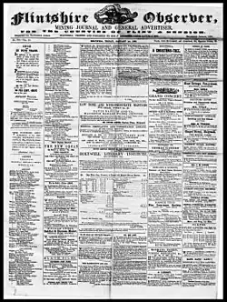 Flintshire Observer, was a Weekly newspaper published mainly in English. It was first Published in Holywell in 1857 as the Flintshire Observer, Mining Journal and General Advertiser. From 1913 it was known as the Flintshire Observer and News and the paper was eventually incorporated into the North Wales Chronicle in 1964.[1]