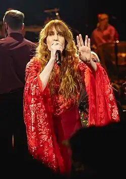 Florence Leontine Mary Welch[1] (born 28 August 1986)[2][3] is an English singer and songwriter. She is the lead vocalist and primary songwriter of the indie rock band Florence and the Machine. The band's debut studio album, Lungs (2009), topped the UK Albums Chart and won the Brit Award for Best British Album. Their next four albums also achieved chart success. In 2018, Welch released a book titled Useless Magic, a collection of lyrics and poems written by her, along with illustrations.