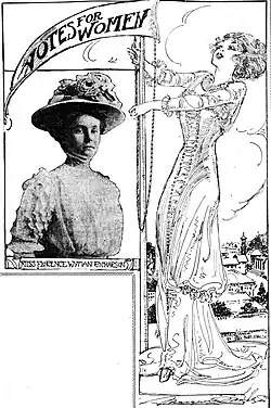 After this, the daughter made a house-to-house canvass; the newspapers hailed the women as something new, giving them a notoriety. The first suffrage speech made by Richardson was at the Artists' Guild, the second was from the platform of the Christian Socialists, and many more followed.[1]