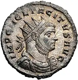 In late 275, Florianus' maternal half-brother, Tacitus, was proclaimed emperor after the unexpected death of Aurelian. Soon after, Tacitus appointed Florianus as praetorian prefect.[3][4] Tacitus then ordered Florianus to lead troops to Pannonia, in order to repel raids into Roman territory by the Goths.[5] Tacitus died suddenly around June 276,[6] allegedly as a consequence of a military plot, and Florianus swiftly proclaimed himself emperor, and was recognized as such by the Roman Senate and the western provinces.[7] Florianus then continued to campaign against the Goths, winning a major victory before the news reached him of the revolt of Probus, who had served successfully as a commander under both Aurelian and Tacitus. Probus' revolt was supported by the provinces of Egypt, Syria, Palestine, and Phoenicia.[7]