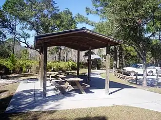Almost half of the state parks have an associated local 501(c)(3) non-profit corporation, often styled, "Friends of {park name} State Park, Inc.".[3] In 2015, some 29,356 volunteers donated nearly 1.3 million hours to enhance the parks for approximately 31 million visitors. There is a mostly nominal admission to nearly all Florida's state parks, although separate fees are charged for the use of cabins, marinas, campsites, etc. Florida's state parks offer 3,613 family campsites, 186 cabins, thousands of picnic tables, 100 miles (160 km) of beaches, and over 2,600 miles (4,200 km) of trails.[3]