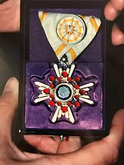 After World War II he went to Hiroshima and Nagasaki, Japan, and built houses to replace those destroyed by the atomic bomb.[12] He described the program as "adventures in good will".[13] He built approximately 40 residential buildings, some single family and some multi-family, from 1949 to 1953 using funds and volunteers from the US.[14][15] During his "Houses For Hiroshima" project, he exchanged letters with Emperor Hirohito[16] and screened his presentation on Mount Rainier for the future Emperor Akihito. In 2012, the sole remaining house was re-opened as a museum, with his then-85-year-old son Wilfred P. Schmoe attending along with Hiroshima mayor Kazumi Matsui.[14] Floyd Schmoe was awarded the Order of the Sacred Treasure (4th Class) in 1982 for his efforts in Japan.[17][18] That same year he received the Hiroshima Peace Prize and was made an honorary citizen of Japan.[19]