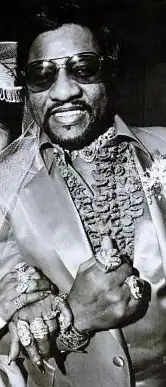 William Morris "Flukey" Stokes (December 12, 1937 – November 19, 1986) was an American reputed mobster from Chicago, Illinois. Stokes was from the South Side and well known for his silk suits,[8] diamond rings, and flamboyant lifestyle[9] as a drug trafficking kingpin and pool hall owner.[10] Stokes immortalized himself in Chicago by throwing a US$200,000 party on his 30th wedding anniversary in 1985 and for the decadent funeral he arranged for his murdered 28-year-old son, Willie "the Wimp" Stokes, Jr. in February 1984.[10][11] The elder Stokes had his son buried in a Cadillac-style coffin with $100 bills stuffed between his diamond ring-laden fingers.[12] Two years later in November 1986, Flukey would also be murdered, along with his chauffeur, sitting inside a 1986 Cadillac limousine[5] while talking on his wireless telephone. Stokes was 48 years old.[13][14]