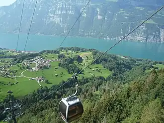 The Luftseilbahn Unterterzen–Flumserberg (SeeJet)[1] gondola lift connects Tannenboden with Unterterzen via Oberterzen (intermediate station). The valley station of the cable car is located adjacent to Unterterzen railway station. The