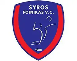 Foinikas Syros (Greek: Φοίνικας Σύρου) is a professional Greek volleyball club based in the island of Syros. Foinikas plays in the first division of Greek Volleyball Championship (A1 Ethniki Volleyball) and has won 2 national titles, the Greek League Cup at 2012 and 2021. Their home ground is the Dimitris Vikelas Arena in Ermoupolis, Syros and their colours are blue and red.