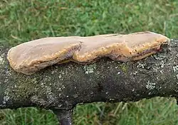 3. ^ Zhou L-W, Xue H-J (2012). "Fomitiporia pentaphylacis and F. tenuitubus spp. nov (Hymenochaetales, Basidiomycota) from Guangxi, southern China". Mycological Progress. 11 (4): 907–913. Bibcode:2012MycPr..11..907Z. doi:10.1007/s11557-012-0806-1.