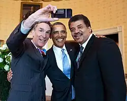 A selfie orchestrated during the 86th Academy Awards by host Ellen DeGeneres was, at one point, the most retweeted tweet ever.[76][77] DeGeneres said she wanted to pay homage to Meryl Streep's record 18 Oscar nominations by setting a new record with her, and invited twelve other Oscar celebrities to join them, which included Meryl Streep, Julia Roberts, Channing Tatum, Bradley Cooper, Kevin Spacey, Angelina Jolie, Brad Pitt, Lupita Nyong'o, Jared Leto, and Jennifer Lawrence. The resulting photo of the celebrities broke the previous retweet record within forty minutes, and was retweeted over 1.8 million times in the first hour.[78][79][80] By the end of the ceremony it had been retweeted over 2 million times; less than 24 hours later, it had been retweeted over 2.8 million times.[77][78] It beat the previous record, 778,801, which was held by Barack Obama, following his victory in the 2012 presidential election.[80][81][82]