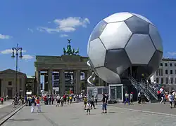 Open Air gatherings of several hundred thousands spectators have become popular during international football competitions, like the World Cup or the UEFA European Championship. Many fans and viewers come together to watch the matches on huge video screens. The event is known as the Fan Mile and takes place at the Brandenburg Gate every two years.[1]