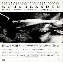 Fopp was released on vinyl only, packaged in black die-cut sleeves and limited to 3,000 copies. The album's cover art was photographed by Charles Peterson. Frontman Chris Cornell said, "The second record did pretty well but it wasn't like a sweep, some people didn't like it."[7]