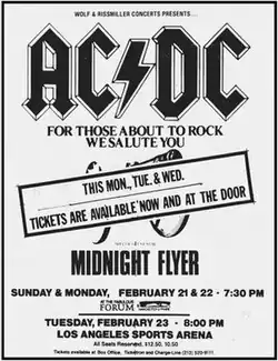 - ^ Durieux, Arnaud. "AC/DC Tour History - 1981/82 "For Those About to Rock" World Tour". ac-dc.net. Retrieved 26 August 2022.