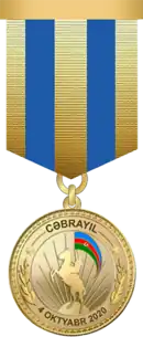 The For the Liberation of Jabrayil Medal (Azerbaijani: «Cəbrayılın azad olunmasına görə» medalı) is a medal of Azerbaijan. The medal was created on the occasion of Azerbaijan being the victor in the Second Nagorno-Karabakh War.[1]