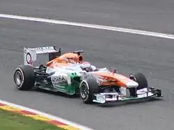 The Force India VJM06[6] is a Formula One racing car designed and built by the Force India team for use in the 2013 season where it was driven by Paul di Resta and Adrian Sutil,[4][5] who returned to the team after spending the 2012 season out of the sport. The car was launched on 1 February 2013 at the team's base near the Silverstone Circuit, and is complete redesign of the previous year's car.[7]