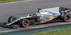 The Force India VJM10 is a Formula One racing car designed and constructed by Force India to compete during the 2017 Formula One season. The car was driven by Sergio Pérez and Esteban Ocon,[3] who joined the team after Nico Hülkenberg left the team at the end of the 2016 season. It made its competitive début at the 2017 Australian Grand Prix.