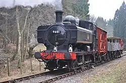 The Forest of Dean once boasted a developed railway network, much of which evolved from plateways built in the early 19th century to facilitate freight traffic to and from mineral workings in the Forest. Many of these lines were part of the Severn & Wye Railway,[49][50][51] which ran from the River Severn at Lydney to Cinderford, with branch lines to Lydbrook, where it connected with the Ross & Monmouth Railway, and Coleford, where it linked to the Wye Valley Railway via a line known as the Coleford Railway. The Forest of Dean Railway also ran towards Cinderford and its nearby collieries, branching from the South Wales Railway at Bullo Pill. The less successful Forest of Dean Central Railway attempted to compete with the other lines for coal traffic but was rendered obsolete by the opening of the Mineral Loop, a new line opened by the Severn & Wye to connect a number of pitheads. Most of these railways now cease to exist, with most of the railways in the Forest abandoned by 1968.[52] A section of the Dean Forest Railway between Lydney Junction and Norchard is now a heritage railway.[50][53]