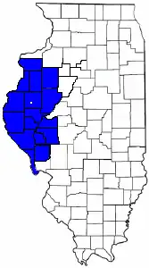 Forgottonia (/ˈfɔːrɡɒˌtoʊniə/), also spelled Forgotonia, is the name given to a 16-county region in Western Illinois in the late 1960s and early 1970s. This geographic region forms the distinctive western bulge of Illinois (area west of 90° Longitude West) that is roughly equivalent to "The Tract", the Illinois portion of the Military Tract of 1812, along and west of the Fourth Principal Meridian (see Principal meridian). Since this wedge-shaped region lies between the Illinois and Mississippi rivers, it has historically been isolated (except for river bridge access) from the eastern portion of Central Illinois.
