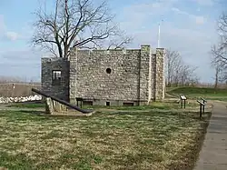 The fort was saved from development in the early 20th century. The earthworks were repaired by the Works Progress Administration during the 1930s. The stone blockhouse was also built by the WPA in 1936 and has been used for various purposes since.[6] The fort was listed on the National Register of Historic Places in 2019.