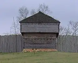 - Structure 10 — 22 feet (6.7 m) x 18 feet (5.5 m), probably a corner blockhouse.