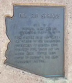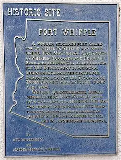 ![]() Fort Whipple historic plaque located on the grounds of the VA Hospital in Prescott, Arizona | |