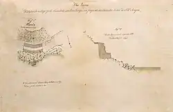 An 1881 survey by Pego and Almeida shows that it was a small fortification, although the plan did not indicate the existence of gun emplacements, service buildings or parapets for rifle fire.[2] It is possible that in the years immediately following it underwent some work, as a plan dated 1898 shows two gun emplacements.