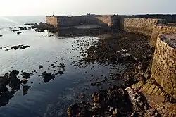 With the advent of the Muslims, closely followed by the introduction of artillery in the 16th century there were several changes to the construction and design of forts. These changes were similar to the changes that took place in Western forts with the advent of gunpowder, i.e. the lowering of walls, thickening of walls, further pushing out of bastions etc.[7] The construction of a citadel in the center and putting in more area between the citadel and the walls was characteristic of Muslim forts (influenced in turn by the Norman mote and bailey). Classic examples of such structures are the Golkonda and Berar forts.[8]