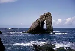 Vagaland's poem "Da Sang o da Papa men"[40] about the fishermen of Papa Stour includes an insistent chorus chant, "Rowin Foula Doon".[41] This refers to the fishermen's practice of rowing their open fishing boat out to sea until the high cliffs of Foula were no longer visible. This entailed the boat's being some 96 kilometres (60 mi) west of Papa Stour.[42][43]