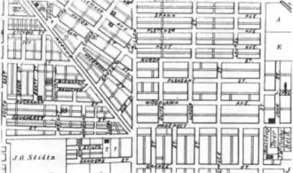 In 1864, the Citizen's Street Railway Company extended their mule-drawn streetcar down to the intersection of Virginia Avenue with Shelby and Prospect Streets, since the construction of the city's Union Station and its multiple railroad lines had cut the area off from the downtown district.[21] With the location of the streetcar turnaround, local residents nicknamed the neighborhood as "The End".[14][17]