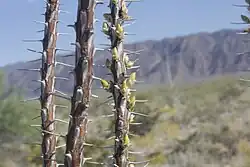 Because this species occurs sympatric with Fouquieria splendens, the plant is not distinguished and is simply referred to as an "ocotillo" by the local people. The specific epithet is named after Forrest Shreve, a desert ecologist who accompanied I. M. Johnston when he discovered the species.[1]