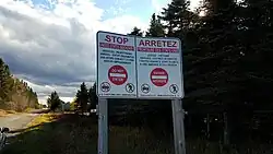 The Four Falls Border Crossing is a one-way crossing between Fort Fairfield, Maine and Four Falls, New Brunswick on the Canada–US border. Traffic is seasonally permitted to enter Canada at this location, but people entering the United States face arrest[1] per immigration[2] and customs laws.[3] It is the only Canada-entry-only border crossing with the United States.