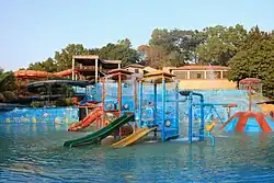 The water park has a wave pool, children's pool,[5] splash pools, and water coaster rides.[4]