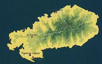 Francois Leguat Reserve is located on the Anse Quitor peninsula in the south-west of the island, a few hundred meters from the Rodrigues airport and right beside Anse Quitor Nature Reserve (not yet open to the public).[7]
