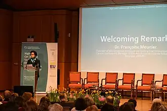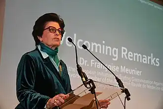 Françoise Meunier (MD, PhD, FRCP, UK) is a Belgian medical doctor specialised in oncology, former Director General of the European Organisation for Research and Treatment of Cancer(EORTC) and Founder of the European Initiative on Ending Discrimination Against Cancer Survivors. She got elevated to Baroness in 2007 by King Albert II of Belgium.