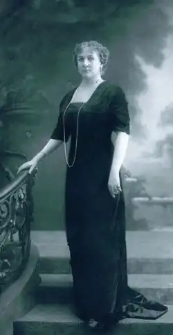She and her infant grandson both died on the luxury steamboat RMS Lusitania, which was sunk by U-20, a German submarine. En route to Canada for interment next to her predeceased husband, her body and casket were lost at sea as the ship transporting it, the RMS Hesperian, was sunk by the same submarine. In American media, this was referred to as a double jeopardy (double murder).[3]