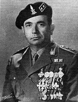 ![]() Francesco de Martini in his first official photo as a Lieutenant Colonel of the Italian army in 1957. | |