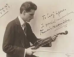 At the age of seven, he began studying at Chicago Musical College, where his teacher was Bernhard Listemann. From 1895 to 1899, he studied with Carl Markees (a student of Joseph Joachim)[1] and with Karl Halir in Berlin and from 1900 to 1902 with César Thomson at the Royal Conservatory of Brussels, where he received two prizes. In the fall of 1902, he made his debut in a Vauxhall in Brussels, followed by a concert tour through Belgium, Germany and England. In the fall of 1903, he played in London and undertook another concert tour through England. His American debut took place on December 7, 1906 at Carnegie Hall with the New York Symphony Society under the direction of Walter Damrosch. This was followed by an extensive tour with 98 concerts in the East and the Midwest of the United States. In the summer of 1907, he returned to London, where he played three concerts with the Queen's Hall Orchestra under the direction of Henry Wood. Onward, he played in the United States and Europe accompanied by Swiss pianist Johnny Aubert. In November and December 1910 he played again with the New York Symphony Orchestra, conducted by Gustav Mahler.[2] He is also the author of several compositions for the violin: Barcarole, Serenade Nègre, Causerie, Liebeslied, Nijinsky et al.